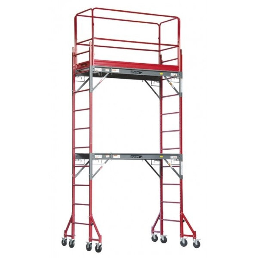 2 Andamios Multiuso con ruedas con horquilla y frenos + Baranda + Set estabilizador